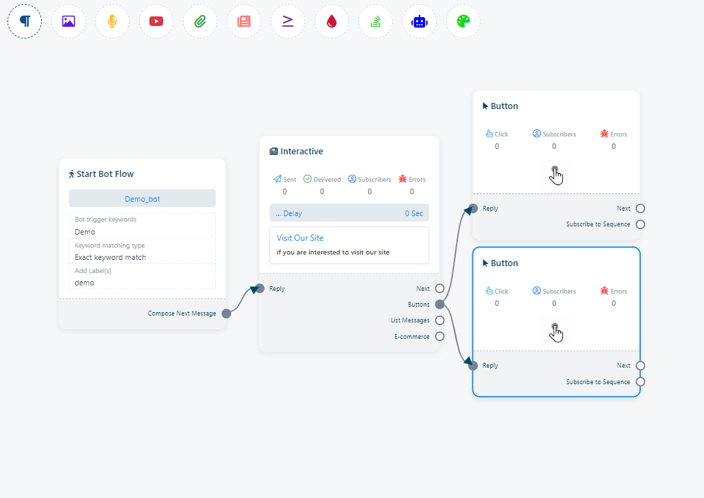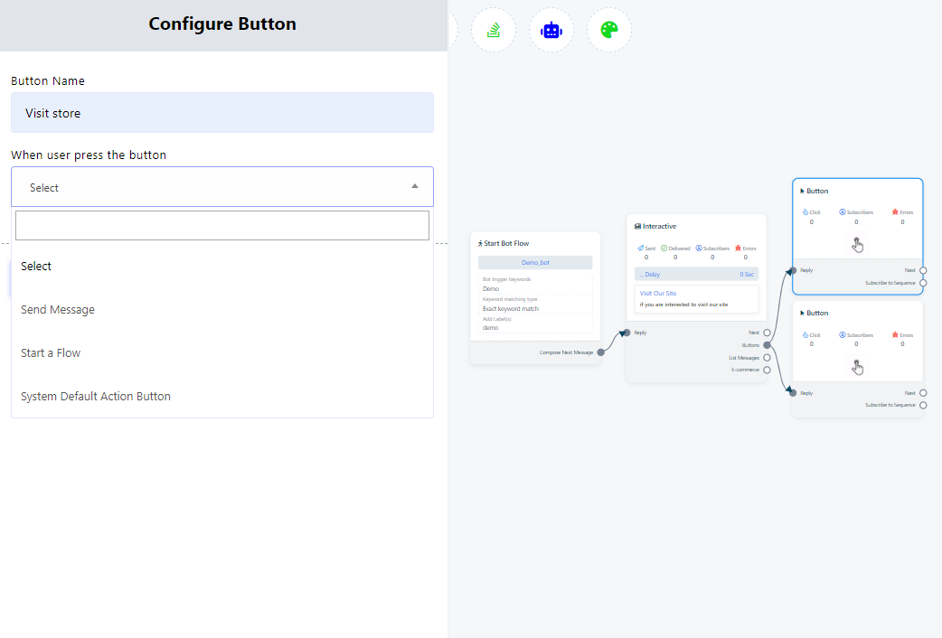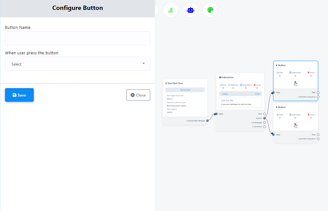 How to add button in your bot flow: