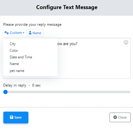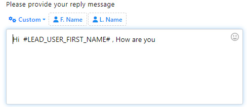 You can also insert custom variables into your reply message. Click the `Custom` button, select a variable from the drop-down menu, and it will be replaced with the actual value before sending the message.