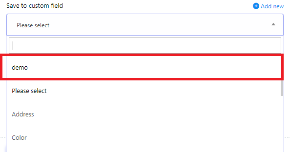 - Use Added new Custom field: Once you`ve created a new custom field, you can select it from the `Save to Custom Field` pop-up menu.